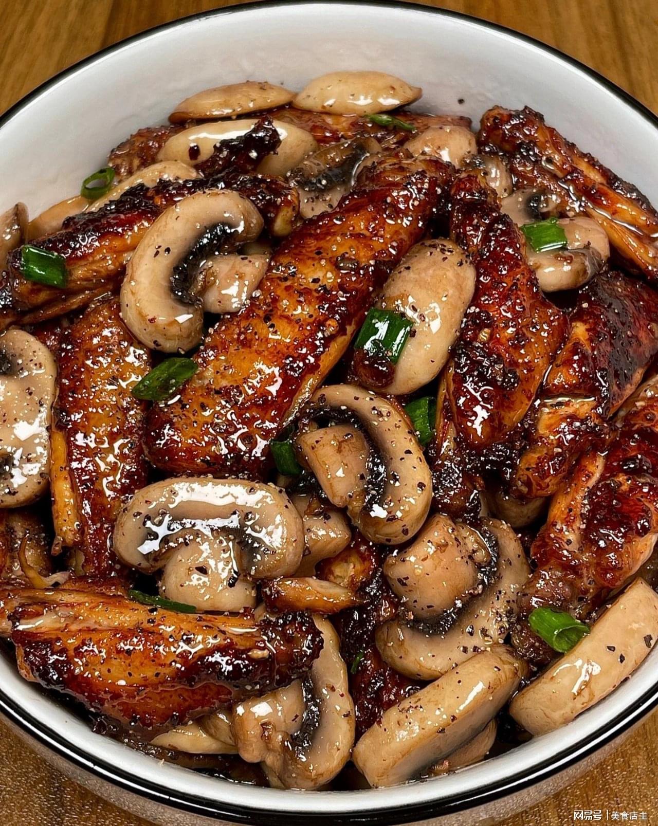 4. 加半碗水焖煮5分钟,最后开大火收汁,蘑菇的鲜味完全融入鸡翅,绝了!
